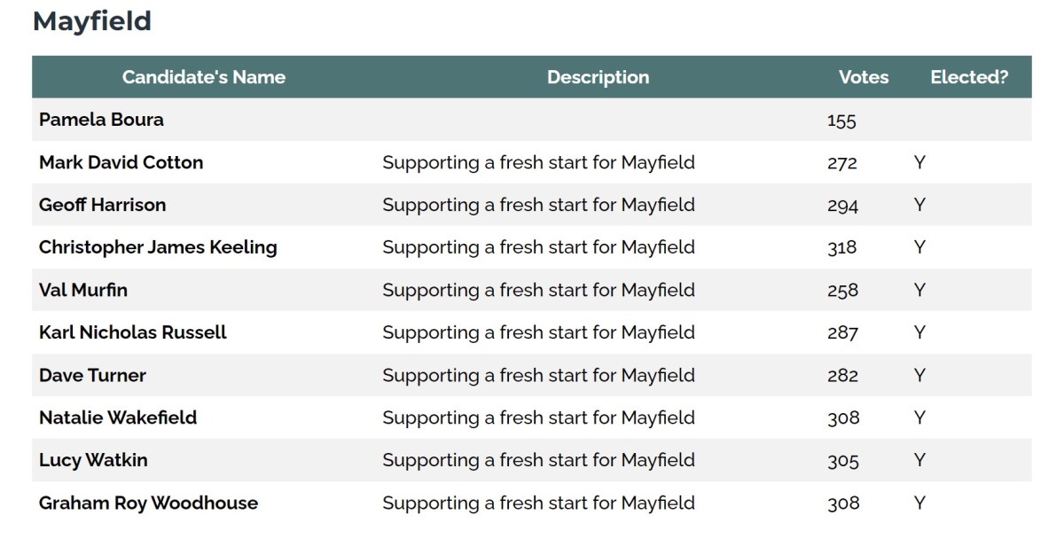 There are some printed copies of the Nomination Pack that are available to potential candidates that don’t have access to the Internet or a printer. These can be picked up from Mayfield Memorial Hall from Sunday 19th March 2023