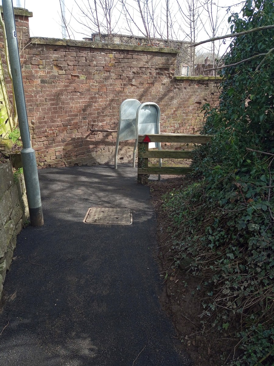 Mayfield Parish Council has been in discussion with Staffordshire County Council (SCC) for a while about how best to undertake the much-needed repair work needed to footpath 25 on The Ginnel. SCC has now re-tarmacked part of the footpath, where tree roots have intruded and raised the surface, made good the level around the manhole cover and replaced the old barriers with a bike inhibitor.